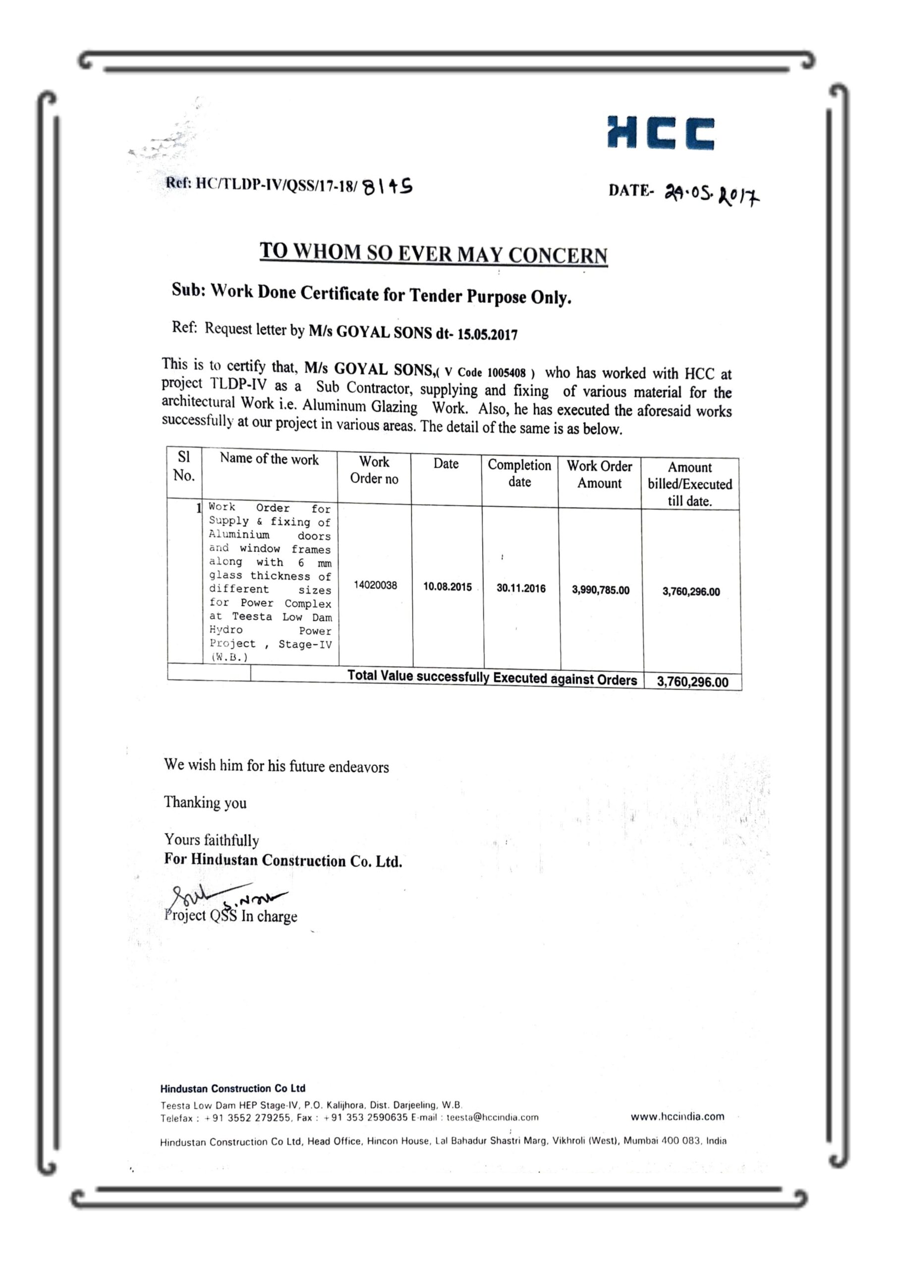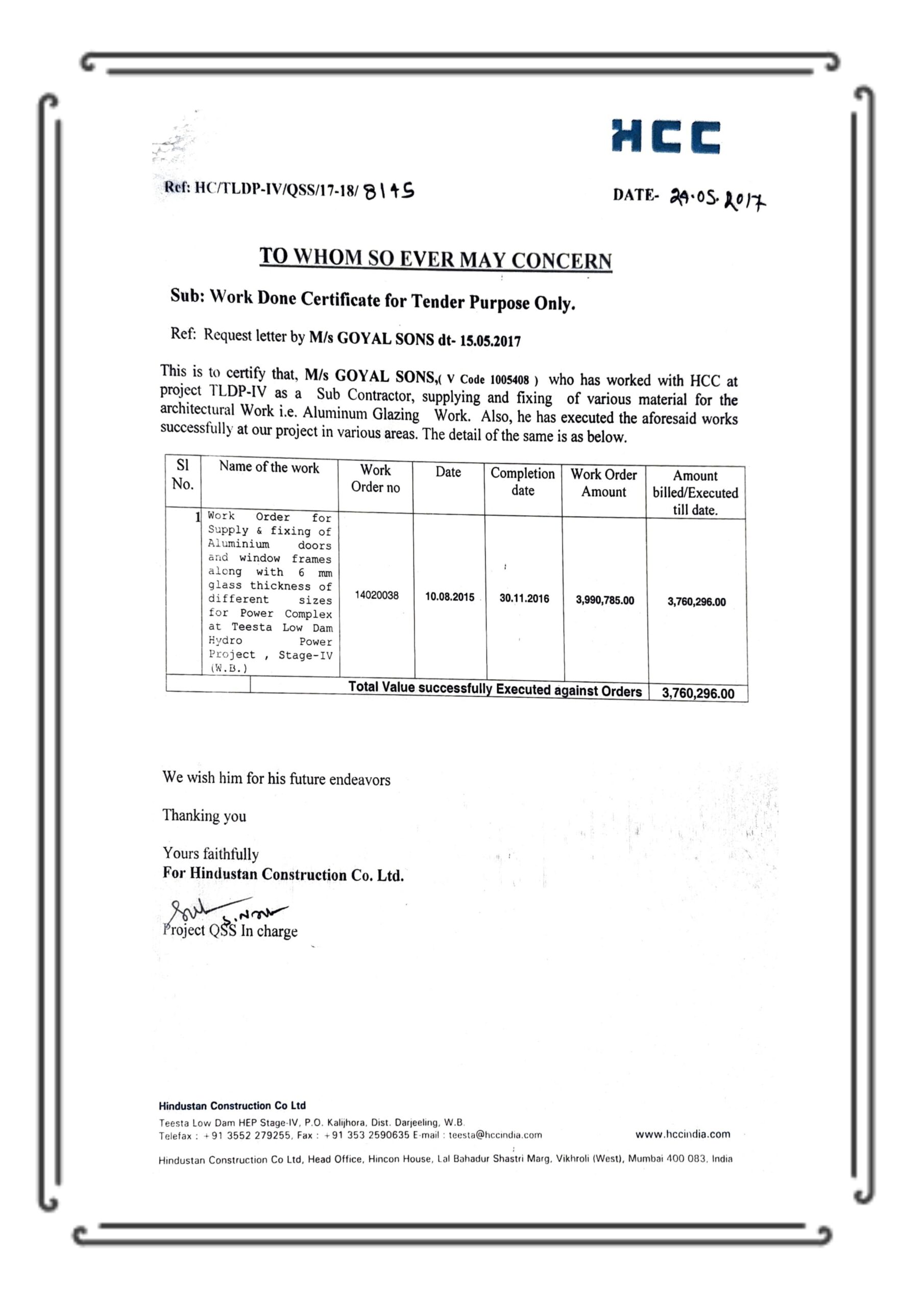 Aluminium works & glazing for Power Complex, completed to client satisfaction.